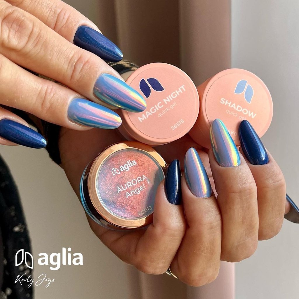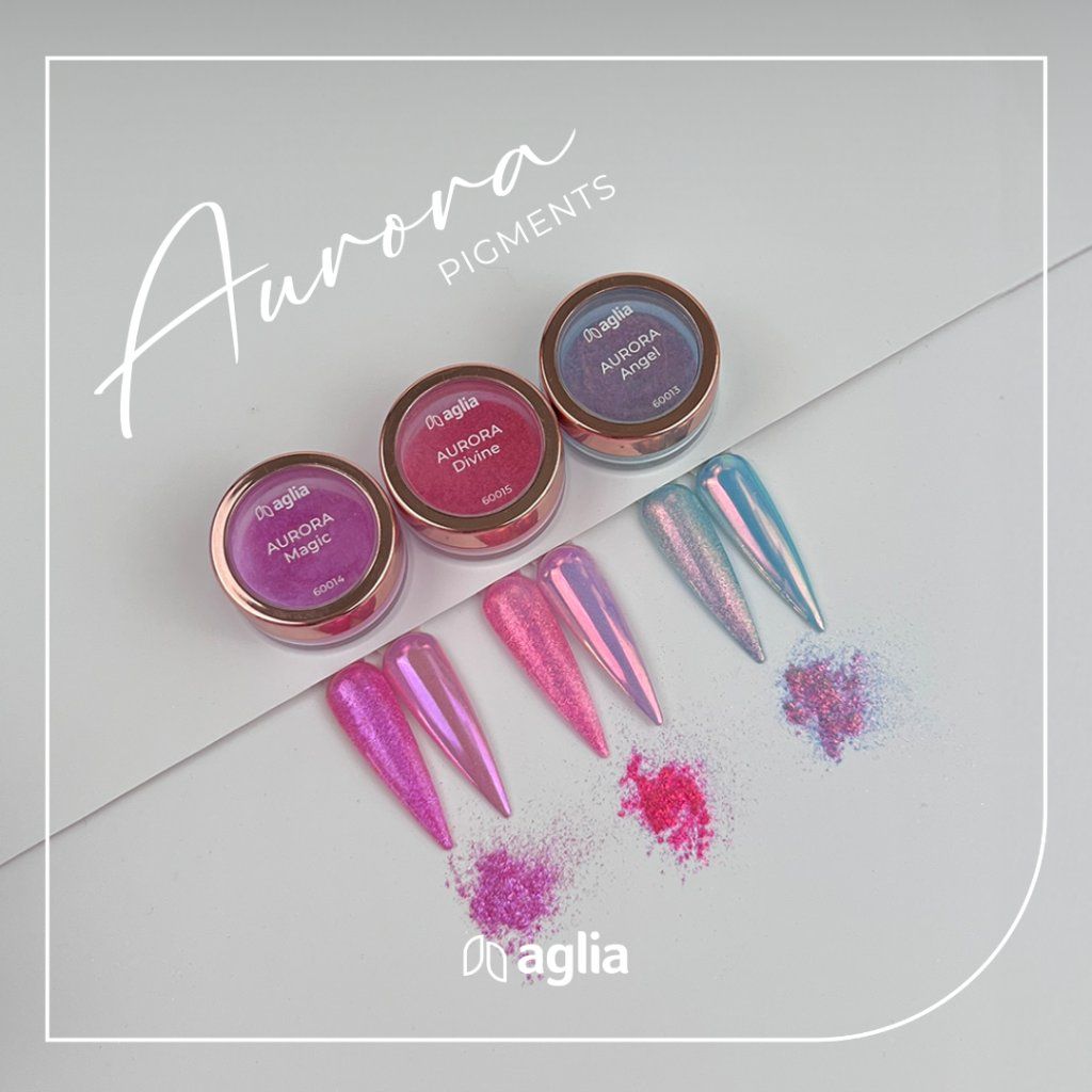 AURORA PIGMENTS create an exclusive shifting effect that gives the nails an elegant and original look.