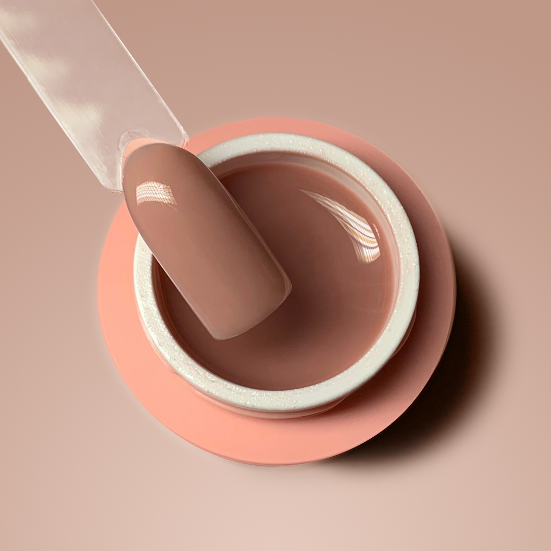 Builder camuflage UV/LED gel of a honey consistency in a cream-skin shade.