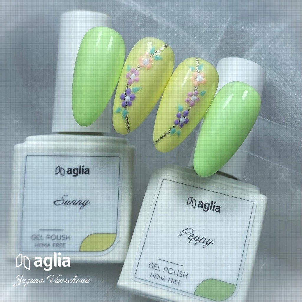 COLOR GEL POLISHES AGLIA stand out for their premium quality, maximum pigmentation, and perfect self-levelling properties. They are ideal for application on reinforced nails using GUMMY BASE, as well as on built nails created with any builder gel or polygel AGLIA.
