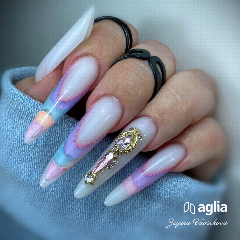 COLOR GEL POLISHES AGLIA stand out for their premium quality, maximum pigmentation, and perfect self-levelling properties. They are ideal for application on reinforced nails using GUMMY BASE, as well as on built nails created with any builder gel or polygel AGLIA.