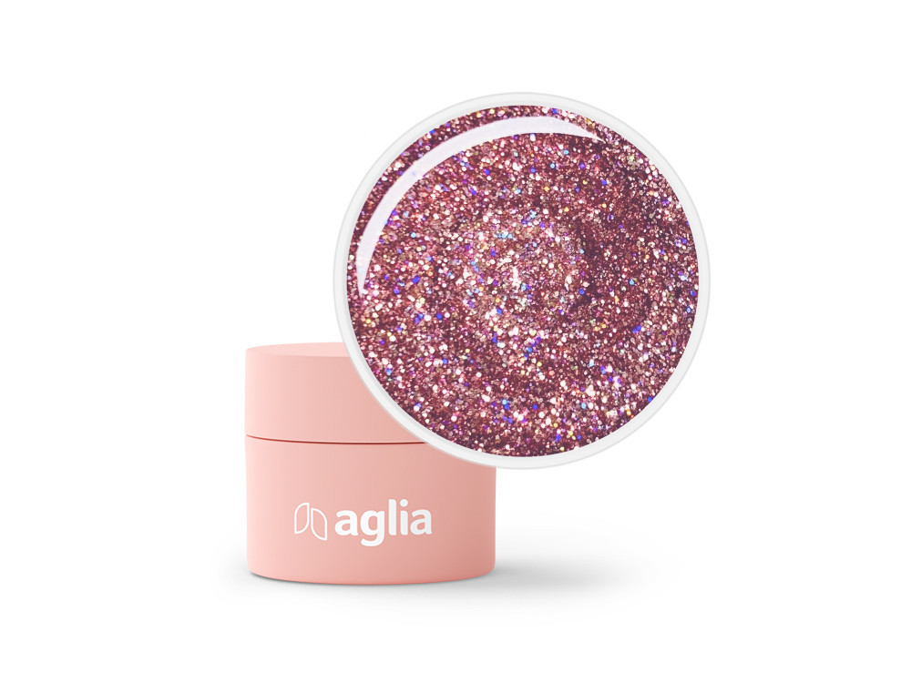 Highly pigmented glittering QUICK color UV/LED gel with holographic effect.