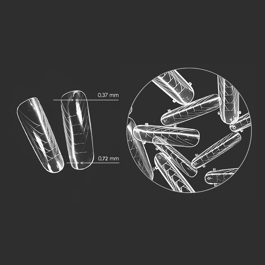 Az AGLIA dual sablonok gyors és egyszerű körömépítéshez készültek, professzionális eredménnyel. A vékonyított peremű, innovatív kialakításnak köszönhetően sima átmenetet biztosítanak a természetes köröm és az építőanyag között, ezáltal csökkentik a túlzott reszelés szükségességét. A megnövelt rugalmasság könnyebb kezelhetőséget és pontosabb illeszkedést tesz lehetővé a köröm formájához.