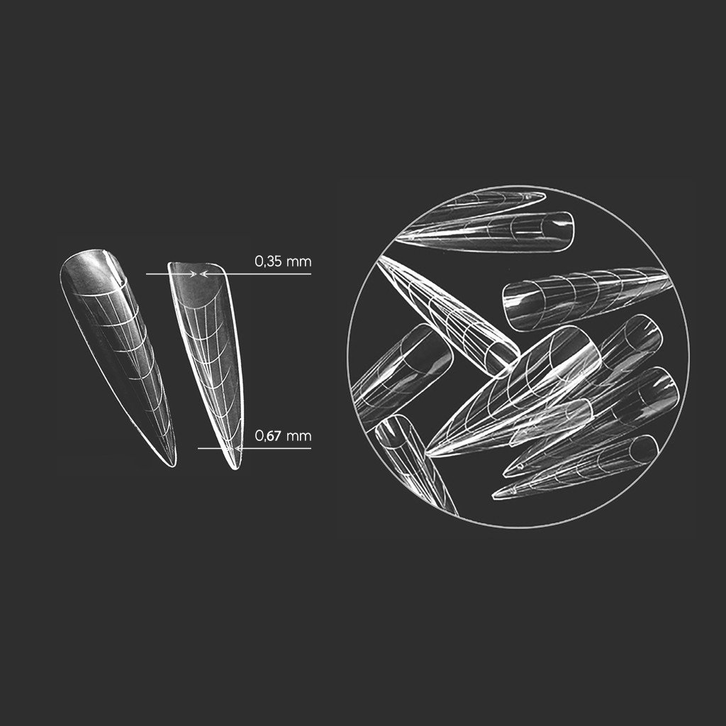 Az AGLIA dual sablonok gyors és egyszerű körömépítéshez készültek, professzionális eredménnyel. A vékonyított peremű, innovatív kialakításnak köszönhetően sima átmenetet biztosítanak a természetes köröm és az építőanyag között, ezáltal csökkentik a túlzott reszelés szükségességét. A megnövelt rugalmasság könnyebb kezelhetőséget és pontosabb illeszkedést tesz lehetővé a köröm formájához.