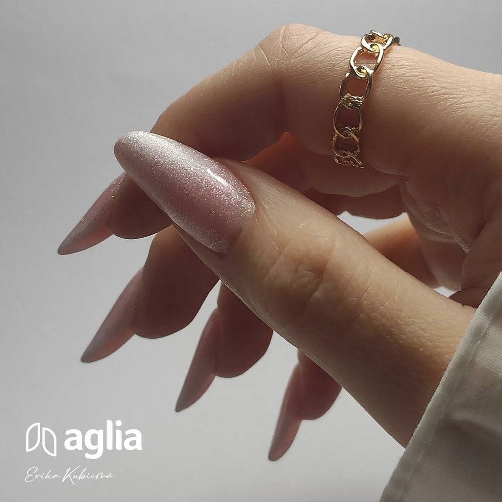 Átlátszó, rugalmas rubber base enyhe rózsaszín árnyalattal és finom rózsaszín aurora csillámokkal, ideális természetes körmök megerősítésére, valamint színes géllakk alá alaprétegként is. Nem tartalmaz HEMA összetevőt, és nagyon érzékeny körömlemez esetén is megfelelő.