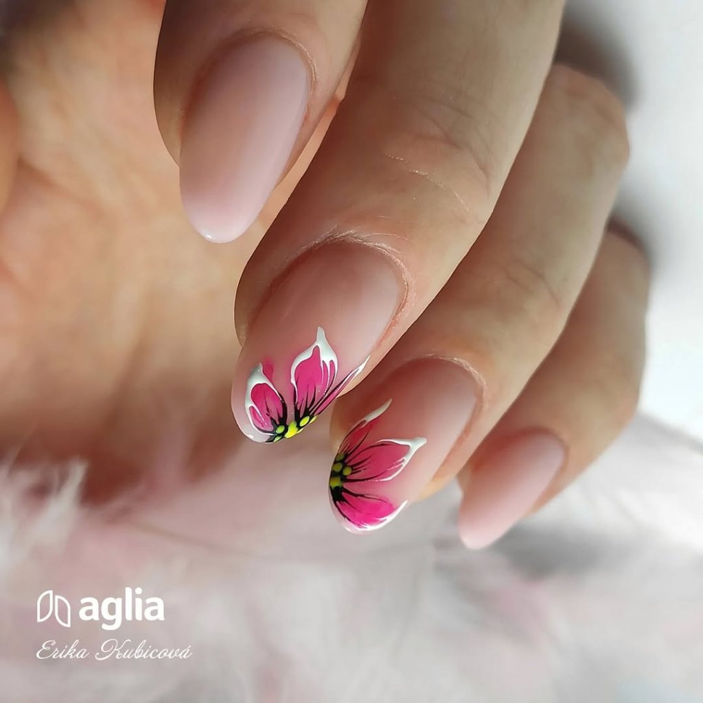 Az előkészített körömre vigye fel a NAIL PREP és PRIMER anyagokat, majd egy vékony réteg BASE UV gélt, amelyet alaposan masszírozzon be a körömlemezbe a FIX GEL No. 4 ecset segítségével. Köttetés után a diszperziós rétegbe vigyen fel egy vékony csúszó réteg építő gélt, majd azonnal folytassa a modellező réteg felvitelét az AMORE OVAL No. 4 ecsettel. A természetes forma kialakításához fordítsa a kezet tenyérrel felfelé; a forma finoman korrigálható a DRAWING No. 003 részletező ecsettel. Köttesse UV lámpában. Köttetés után folytatható a színes gél vagy a fedőfény felvitele.