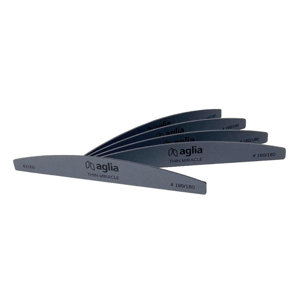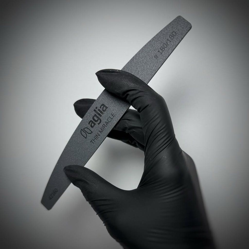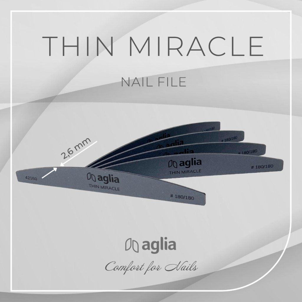 THIN MIRACLE 180/180 – thin professional nail file in a half-moon shape, distinguished from standard files not only by its slim profile but also by high durability and long lifespan. Thanks to its thinness and narrow shape, it allows exceptionally precise and easy work even in hard-to-reach areas.
