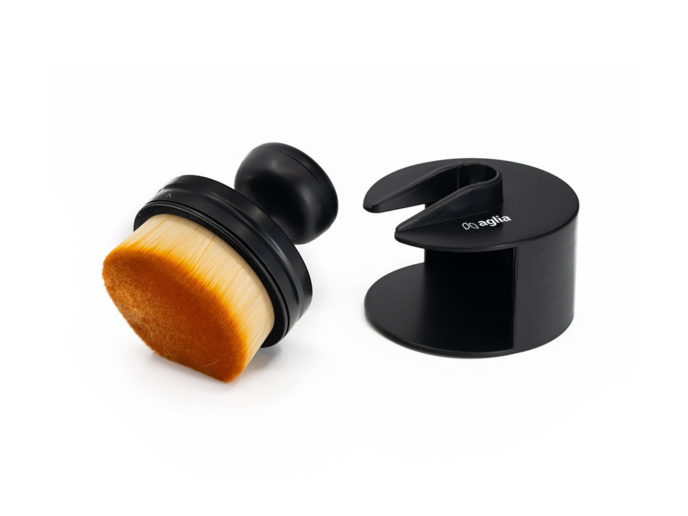 Very dense and fine brush for removing dust after filing. Also includes a practical stand.